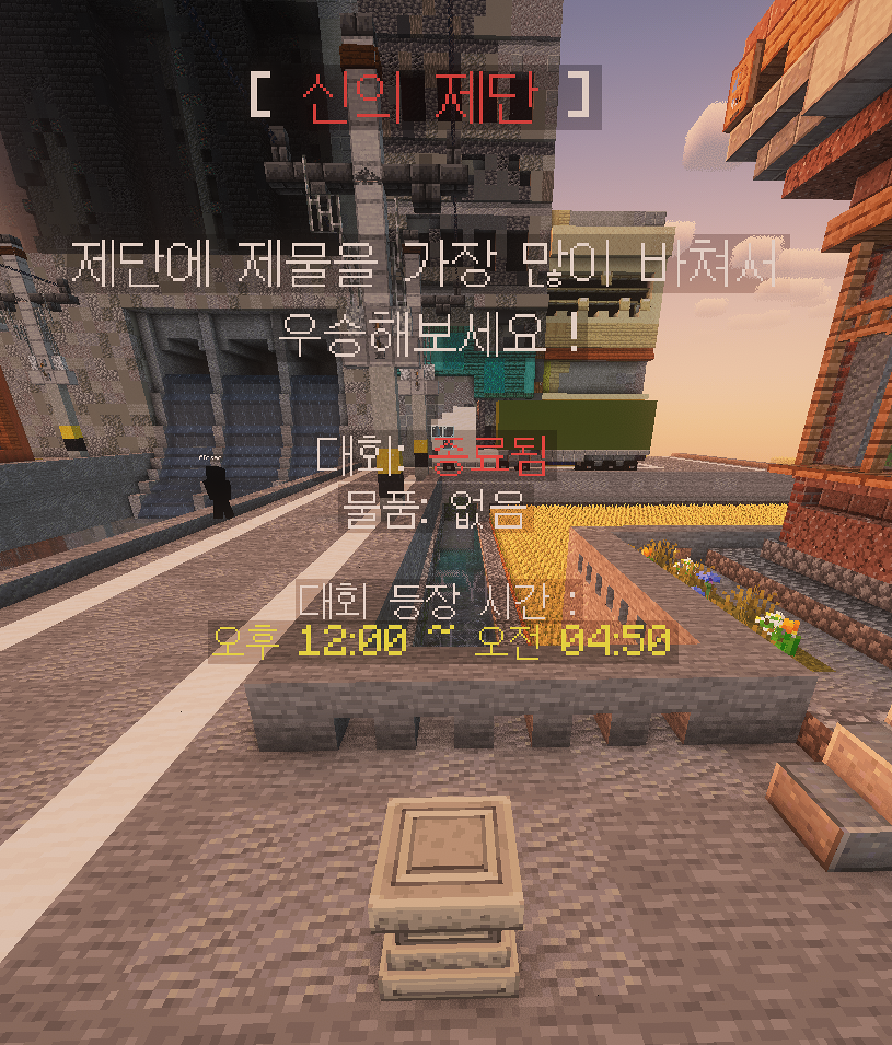 **신의 제단 콘텐츠는  2시간마다&#x20;**<mark style="color:purple;">**20분에서 50분까지**</mark> <mark style="color:green;">**30분간**</mark>**&#x20;진행되는 이벤트입니다!**
